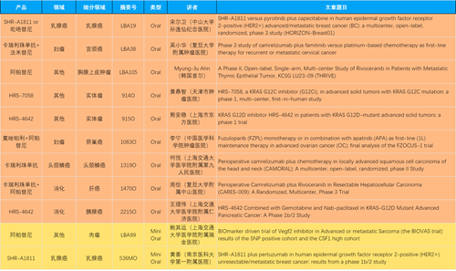 本届大会,作为中国医药创新代表性企业的AG百家乐医药共有46项抗肿瘤领域研究成果入围,包括4项最新突破性摘要(LBA)1,共涉及14项创新药。其中9项入选口头(Oral)报告,2项入选简短口头报告(Mini Oral),32项研究接收为壁报(Poster),3项研究接收为电子壁报(E-Poster),覆盖食管胃癌、妇科肿瘤、肝癌、乳腺癌、胰腺癌、肺癌、肉瘤、胆道癌、头颈鳞癌、前列腺癌、甲状腺癌等十余个领域。14款创新药包括10款已上市产品:注射用瑞康曲妥珠单抗(艾维达®,研发代号:SHR-A1811)、注射用卡瑞利珠单抗(艾瑞卡®)、苹果酸法米替尼胶囊(艾比特®)、甲磺酸阿帕替尼片(艾坦®)、马来酸吡咯替尼片(艾瑞妮®)、阿得贝利单抗注射液(艾瑞利®)、羟乙磺酸达尔西利片(艾瑞康®)、氟唑帕利胶囊(艾瑞颐®)、瑞维鲁胺片(艾瑞恩®)、海曲泊帕乙醇胺片(恒曲®),以及4款未上市产品,包括KRASG12C抑制剂HRS-7058、KRASG12D抑制剂HRS-4642、抗PD-L1/TGF-βRII双抗瑞拉芙普-α注射液(SHR-1701)、Trop-2 ADC SHR-A1921。2类新药盐酸伊立替康脂质体注射液(II)(越优力®)及国内首仿药昂丹司琼口溶膜(艾其速®)各有1项研究入选。